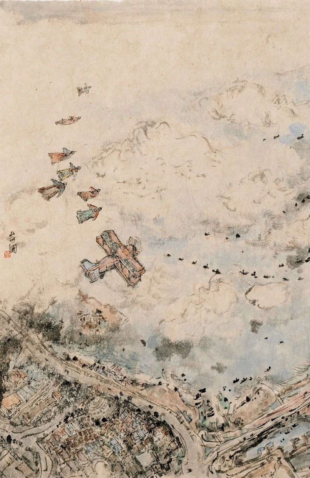 高空俯瞰 46x68cm 艾国俯远法作品 2022年纸本